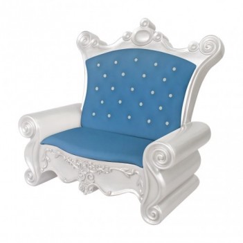 Niebiesko-biała sofa Mikołaja stanowi nowoczesną interpretację tradycyjnego tronu świątecznego. Bogata niebieska tapicerka oraz dekoracyjny design przyciągają uwagę i doskonale komponują się z profesjonalnymi dekoracjami świątecznymi.