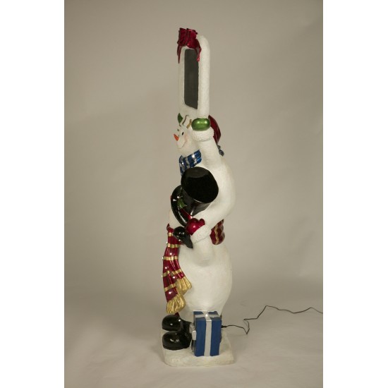 Snowmen Blackboard z 26 diodami LED to efektowna dekoracja świąteczna w formie tablicy trzymanej przez przyjazne bałwany. Model o wymiarach L 54 x W 38 x H 158 cm wykonany jest z trwałej żywicy z włókna szklanego (fiberglass resin), dzięki czemu nadaje się do zastosowań wewnętrznych i zewnętrznych. Podświetlenie LED przyciąga uwagę klientów, a tablica umożliwia umieszczanie świątecznych wiadomości, promocji lub odliczania dni do Bożego Narodzenia.
