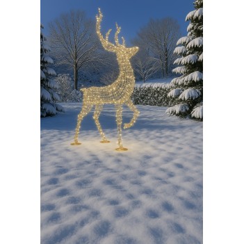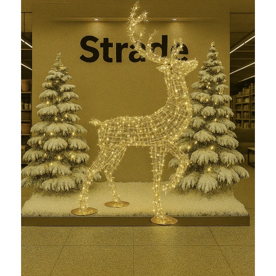 Animowany renifer 3D Animated Swaying Reindeer Warm White 4 m to dekoracja klasy premium, stworzona z myślą o profesjonalnych instalacjach świątecznych w przestrzeniach publicznych, komercyjnych oraz eventowych. Imponująca wysokość 400 cm oraz realistyczny ruch animatroniczny przyciągają uwagę i tworzą efekt „wow” w centrach handlowych, na placach miejskich, w parkach tematycznych czy przed obiektami hotelowymi. Konstrukcja oparta na trwałym połączeniu metalu i żywicy fiberglass zapewnia wysoką odporność na warunki atmosferyczne, co pozwala na bezpieczne użytkowanie na zewnątrz w sezonie zimowym. Zastosowane oświetlenie LED w kolorze warm white tworzy przyjemną, świąteczną atmosferę oraz gwarantuje energooszczędność. Model jest wolnostojący, przystosowany do ekspozycji podłogowej i zaprojektowany jako dekoracja typu photo opportunity, idealna do zdjęć i interakcji z odwiedzającymi. Produkt należy do kolekcji Hamac Displays, znanej z wysokiej jakości wykonania i rozwiązań stosowanych w profesjonalnych dekoracjach sezonowych.