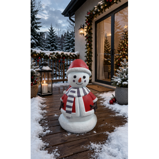 Mini Jane Snow to urocza figurka świąteczna z rodziny bałwanów, idealna do dekoracji ogrodu, tarasu lub przestrzeni komercyjnych. Dzięki wymiarom L 35 x W 34 x H 57 cm doskonale sprawdzi się zarówno jako samodzielna ozdoba, jak i element większej aranżacji zimowej. Wykonana z trwałej żywicy z włóknem szklanym, odporna na warunki atmosferyczne. Doskonały wybór dla sklepów, hoteli i przestrzeni publicznych.