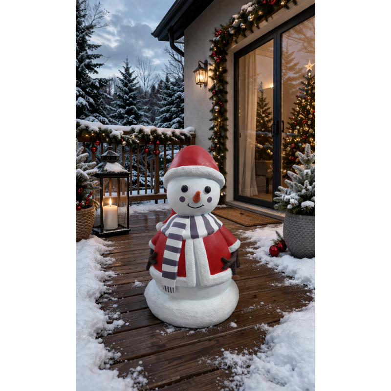 Figurka została wykonana z wysokiej jakości żywicy z włóknem szklanym, co gwarantuje trwałość oraz odporność na warunki atmosferyczne. Dzięki temu może być stosowana zarówno wewnątrz, jak i na zewnątrz budynków – w ogrodach, na tarasach, przed wejściami do sklepów czy hoteli. Mini Jane Snow doskonale komponuje się z innymi elementami kolekcji bałwanów, tworząc spójne, świąteczne aranżacje. To świetne rozwiązanie dla przestrzeni komercyjnych, które chcą stworzyć przyjazną, zimową atmosferę.