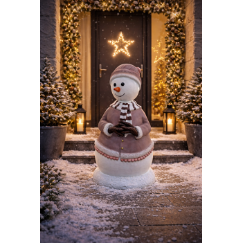 Mini Mama Snow to urocza figura zimowa przedstawiająca postać matki z rodziny bałwanków. Jej przyjazny uśmiech oraz otwarta postawa sprawiają, że idealnie nadaje się do dekoracji przestrzeni komercyjnych i prywatnych.