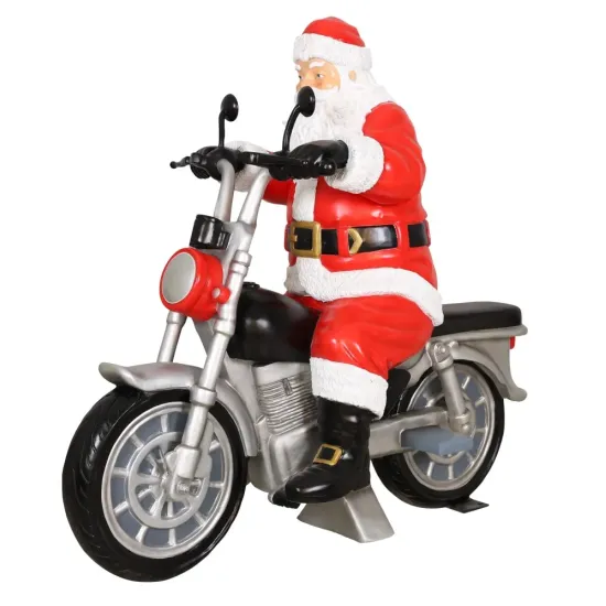 Duży Święty Mikołaj na motocyklu to jedna z dekoracji, z których wszystkie są dostępne w różnych wersjach odpornych na warunki atmosferyczne żywicy z włókna szklanego i wytrzymałego metalu