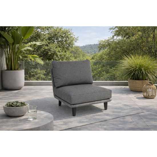 Fotel Cordial Luxe jasnoszary z poduszkami to doskonały wybór dla osób ceniących wygodę, jakość wykonania i nowoczesny styl w przestrzeni outdoor. Zaprojektowany tak, aby idealnie komponować się z innymi elementami kolekcji Cordial Luxe, stanowi zarówno estetyczny, jak i funkcjonalny element strefy wypoczynkowej. Dzięki solidnej konstrukcji z aluminium malowanego proszkowo mebel jest niezwykle odporny na wpływ warunków pogodowych, a ręcznie pleciona lina Olefin zapewnia dodatkową wytrzymałość oraz atrakcyjny wygląd. Jej odporność na promieniowanie UV i szybkie schnięcie po opadach gwarantują użytkowanie przez wiele sezonów. Miękkie, grube poduszki z interlinerem oferują świetne wsparcie oraz komfort podczas dłuższego relaksu, a ich pokrycia są łatwe w utrzymaniu czystości. Fotel można zestawiać z innymi meblami z kolekcji — takimi jak sofy, pufy czy stoliki — co pozwala stworzyć spójną i komfortową strefę lounge. Jasnoszary odcień podnosi estetykę aranżacji i harmonijnie wpisuje się w różnorodne style ogrodowe i tarasowe. To mebel, który łączy nowoczesny design z funkcjonalnością i trwałością, zapewniając wyjątkowy komfort wypoczynku na świeżym powietrzu.