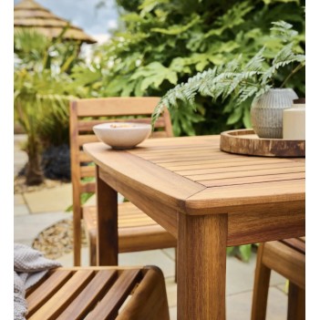 Cotswold Acacia Wood Square Dining Table to elegancki stół jadalniany wykonany z premium olejowanego drewna akacjowego, który łączy klasyczny design ze zrównoważonym rzemiosłem. What’s included: 1 x Cotswold Square Dining Table. Wymiary (Product specs): szer. 800 mm × wys. 755 mm × gł. 800 mm. Gwarancja: 3 lata strukturalnej gwarancji. Funkcjonalny mebel, idealny do ogrodu, tarasu lub przestrzeni zewnętrznych, gdzie możesz wygodnie organizować posiłki i spotkania towarzyskie w otoczeniu natury.