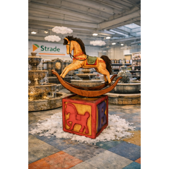 Dzięki imponującym wymiarom 65 × 120 × 140 cm (L × W × H) dekoracja stanowi wyraźny punkt centralny aranżacji, idealny do sklepów z zabawkami, galerii handlowych, showroomów oraz sezonowych wystaw świątecznych. Produkt jest przeznaczony do użytkowania wyłącznie wewnątrz pomieszczeń i działa w technologii animatronicznej. Zgodnie z informacjami producenta, Rocking Horse on Letter Block jest jednym z wielu produktów Creation Group, które tworzą niezapomniane dekoracje świąteczne dla odbiorców w każdym wieku.