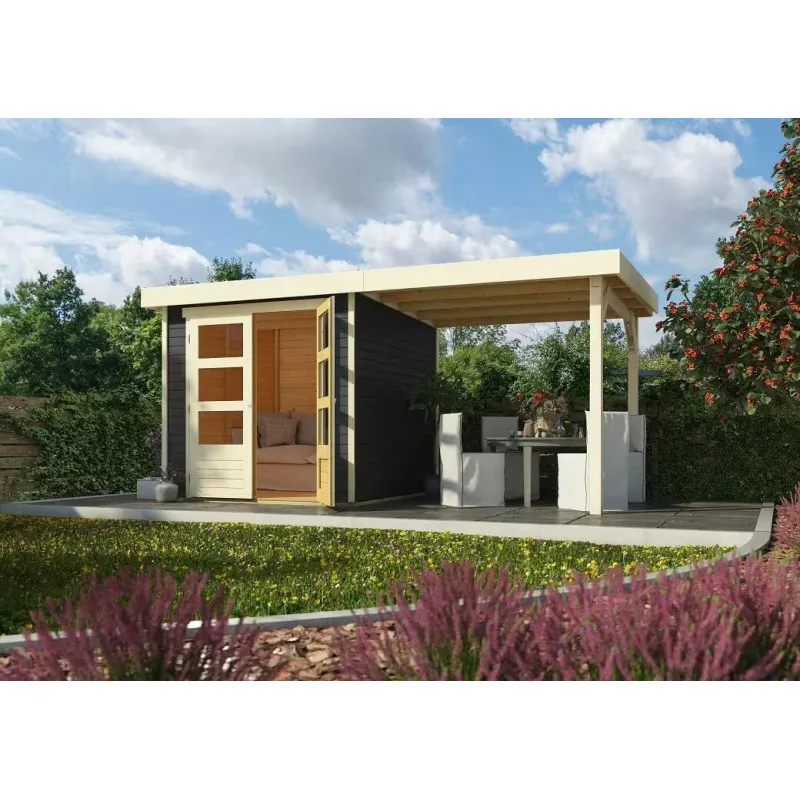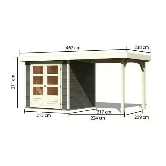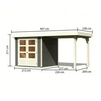 Niezależnie od tego, czy jest to nowoczesny, klasyczny czy elegancki, domek ogrodowy Askola 2 wpasuje się w każdą atmosferę ogrodu. Dzięki wymiarom zewnętrznym (szer. x głęb.) 213 x 217 cm jest to idealny rozmiar do przechowywania narzędzi ogrodowych lub do stworzenia przytulnego miejsca na odpoczynek we własnym ogrodzie. Dom dostępny jest również z dachem dołączonym w szerokościach 2,40 m lub 2,80 m. Idealnie sprawdzi się jako schowek na narzędzia ogrodowe lub wygodne miejsce do siedzenia podczas wieczorów przy grillu. Nic nie stoi na przeszkodzie, aby bezpiecznie grillować w deszczowy letni dzień.