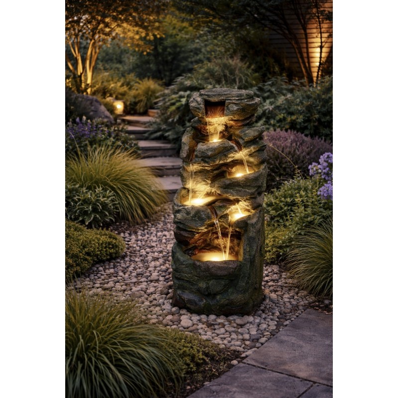 Glenvale Rock Falls to wysokiej jakości fontanna ogrodowa inspirowana naturalnym krajobrazem skalnym. Jej konstrukcja została zaprojektowana tak, aby wiernie odwzorowywać spływającą wodę po kamieniach, tworząc spokojny i relaksujący efekt wizualny oraz dźwiękowy. Dzięki zastosowaniu wytrzymałej żywicy produkt jest lekki, a jednocześnie odporny na uszkodzenia i zmienne warunki atmosferyczne.