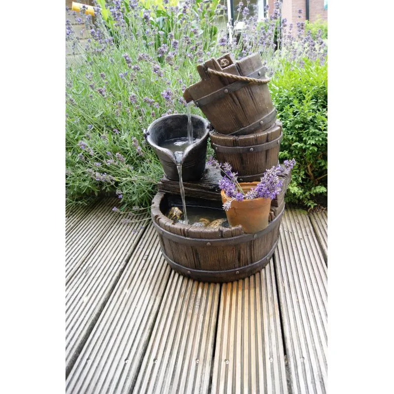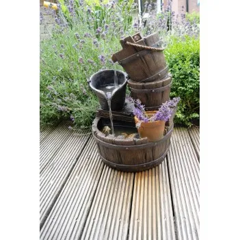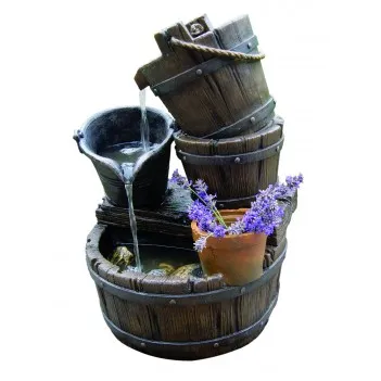 Rustykalny element dekoracyjny "Beczki i wiadra 'dla ogrodu i tarasu. Kaskada dostarczana jest w komplecie z pompą i jest gotowy do użycia. Z własnym zbiornikiem wodnym.