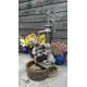 Rustykalne dekoracyjna pompa oraz zestaw beczek do ogrodu lub tarasu. Woda jest dostarczana za pomocą pompy i spływa do beczek, aby zakończyć we własnym zbiorniku wodnym.