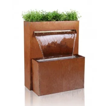 Materiał corten potrzebuje około 3 dni aby zacząć stwarzać warstwę ochronną - w zależności od warunków pogodowych - przechodząc od tradycyjnej srebnej stali do koloru utlenionego metalu, przynosząc wybuch koloru pomarańczowego dopełniającego kwiaty i ogrody. Specjalna technika spawania zostały zastosowane w celu zapewnienia stałego wietrzenia aby uzyskać antyczny wygląd, podczas gdy wbudowane światła LED oświetlają dekorację tworząc wspaniały, zachwycający widok podczas dnia i nocy. Jako autonomiczna fontanna zostaje dostarczona ze wszyskim czego potrzebujesz by natychmiast zaczęła działać, bez potrzeby dokupowywania dodatkowego zbiornika. Wystarczy dodać wody, podłączyć do zasilania i jest gotowa. Idealna dla użytku zewnętrznego, ta ściana wodna z pewnością stanie się olśniewającym punktem każdego ogrodu lub patio sięgając imponujących 1,75 m wyskości.