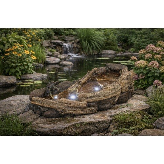 Fontanna ogrodowa Small Woodland River została zaprojektowana z myślą o stworzeniu realistycznego efektu płynącej wody w naturalnym, leśnym otoczeniu. Jej szczegółowe wykończenie oraz struktura imitująca kamienie i strumień sprawiają, że idealnie komponuje się z zielenią ogrodu, tarasem lub strefą relaksu. Wbudowane oświetlenie LED podkreśla ruch wody, tworząc wyjątkową atmosferę również po zmroku.