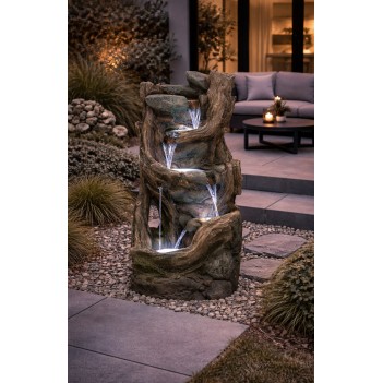 Drumbeg Rock Falls to elegancka fontanna ogrodowa inspirowana naturalnymi formacjami skalnymi, która wprowadza relaksujący klimat do każdej przestrzeni zewnętrznej. Dzięki kompaktowym wymiarom L 45 x W 34 x H 98 cm idealnie sprawdzi się na tarasie, patio lub w ogrodzie. Wbudowane oświetlenie LED podkreśla efekt płynącej wody po zmroku, tworząc wyjątkową atmosferę. Wykonana z trwałej żywicy, odpornej na warunki atmosferyczne, zapewnia długotrwałe użytkowanie. Zasilanie sieciowe gwarantuje stały przepływ wody.