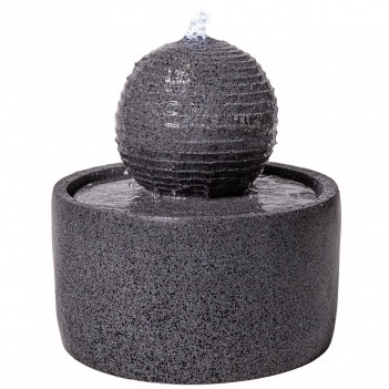 Fontanna ogrodowa Padova w kształcie kuli o wymiarach 41 cm wysokości oraz 40,5 × 40,5 cm szerokości i głębokości to nowoczesna dekoracja do ogrodu, na taras lub patio. Wykonana z trwałego poliresinu odpornego na UV w eleganckim szarym kolorze, posiada wbudowane oświetlenie LED oraz pompę 0,36 W o wydajności 180 LPH. Zasilana sieciowo, z zamkniętym obiegiem wody, tworzy efekt subtelnie spływającej wody po geometrycznych krawędziach.