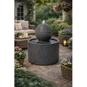 Padova Sphere to nowoczesna fontanna ogrodowa o kompaktowej wysokości 41 cm. Geometryczna kula z kaskadowymi stopniami pozwala wodzie łagodnie spływać po powierzchni, tworząc efekt falowania i odbicia światła. Zasilanie sieciowe umożliwia korzystanie o każdej porze dnia i nocy.