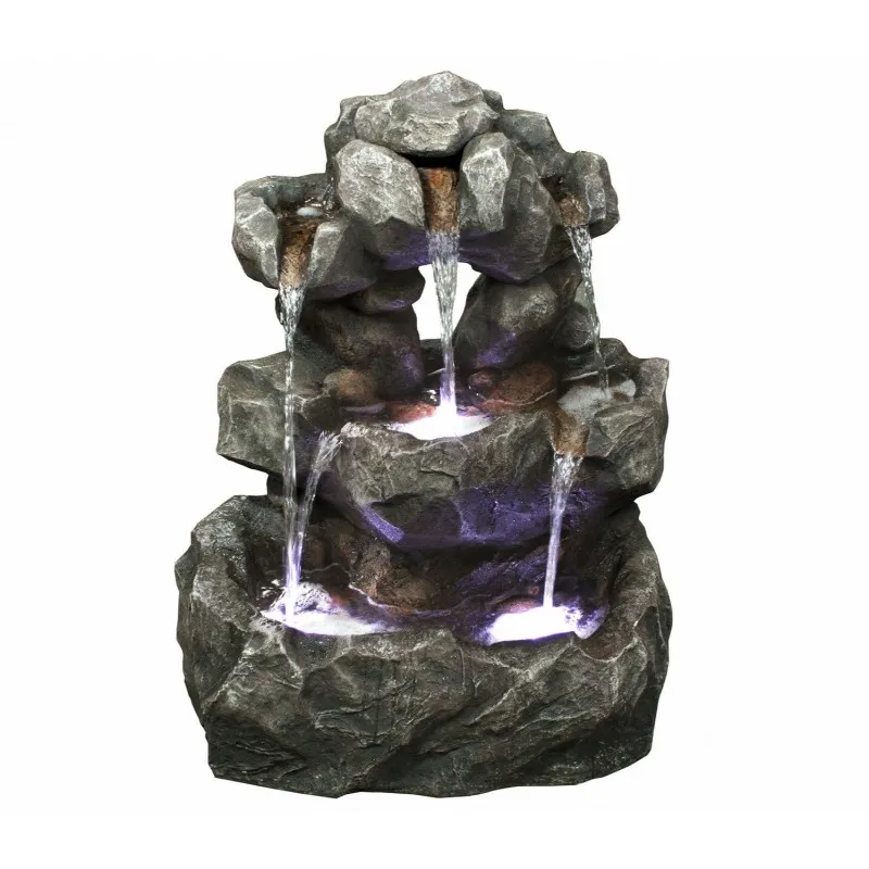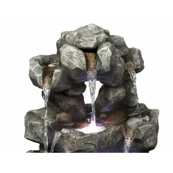 Diody LED wprowadzając światło, które powoduje, że baseny skalne błyszczą,a fontanna polyresin jest ręcznie wykończona, aby odtworzyć naturalnie wyglądając skałę,