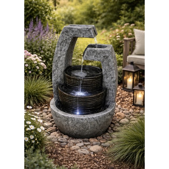 Solar Kells Carved Stone to nowoczesna fontanna ogrodowa wykorzystująca energię słoneczną do zasilania pompy wodnej. Jej konstrukcja inspirowana rzeźbionym kamieniem nadaje przestrzeni naturalny i elegancki charakter. Delikatnie spływająca woda tworzy przyjemny, relaksujący efekt wizualny i akustyczny, który sprzyja odpoczynkowi w ogrodzie lub na tarasie.