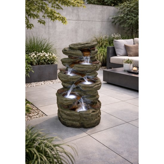 Solar Wellington Rock Falls to elegancka fontanna ogrodowa inspirowana naturalnym krajobrazem skalnym. Dzięki realistycznej strukturze skał oraz kaskadowemu przepływowi wody element ten staje się wyjątkową ozdobą ogrodu, patio, tarasu hotelowego lub przestrzeni publicznej. Delikatny szum wody wprowadza spokojną i relaksującą atmosferę, a naturalna stylistyka sprawia, że fontanna doskonale wpisuje się w otoczenie zieleni i kamiennych elementów architektury ogrodowej.