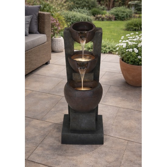Produkt wykonany został z wysokiej jakości żywicy, co zapewnia odporność na zmienne warunki atmosferyczne oraz długą żywotność. Wbudowane oświetlenie LED podkreśla strukturę fontanny po zmroku, tworząc wyjątkową atmosferę. Idealna do ogrodów, tarasów i przestrzeni hotelowych.