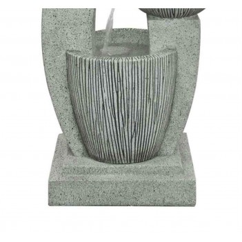 Fontanna została wykonana z trwałej żywicy odpornej na warunki atmosferyczne, co zapewnia długą żywotność produktu nawet przy intensywnym użytkowaniu na zewnątrz. Zintegrowany panel solarny zasila pompę wodną oraz oświetlenie LED, dzięki czemu instalacja nie wymaga przewodów ani dodatkowych źródeł energii. To rozwiązanie ekologiczne i ekonomiczne.