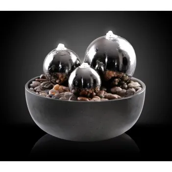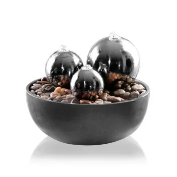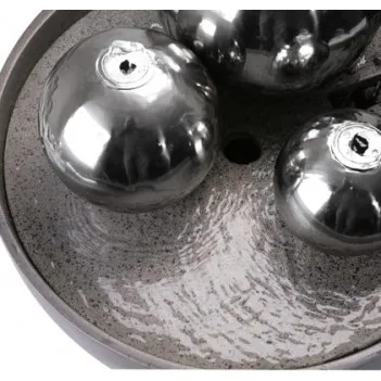 Ta fontanna  ze stali nierdzewnej oferuje wspaniały nowoczesny design, który będzie cieszył wzrok, wewnątrz lub na zewnątrz. Kule ze stali nierdzewnej są niezwykle popularne wśród ogrodników i projektantów ogrodów. Współczesna estetyka tej funkcji jest dodatkowo wzbogacona przez Ultrabright białe diody LED na górze każdej kuli, tworząc niesamowity efekt, który wygląda szczególnie pięknie w nocy.