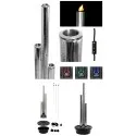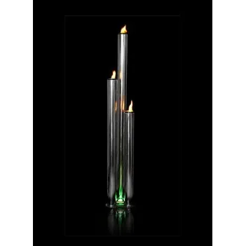 Migoczące płomienie na górze i wyciekająca woda po bokach kolumny ze stali nierdzewnej tworzą niesamowity efekt