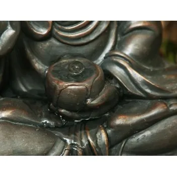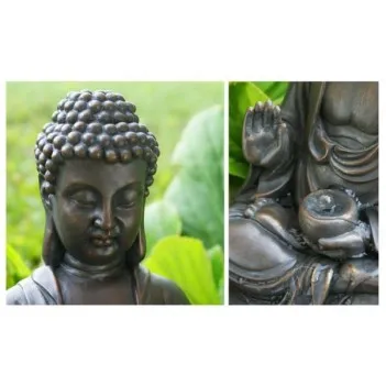 Ten medytujący Budda będzie wspaniałym dodatkiem do twojego domu lub ogrodu. Woda wypływa z trzymanego przez rzeźbę kubka herbaty wprost do ukrytego zbiornika