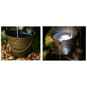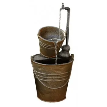Ta pięknie wykonana funkcja wody, wyposażony w dwa wiadra i kran, została znakomicie zaprojektowane tak, aby wyglądać prawie dokładnie jak prawdziwe mosiężne wiadra pod kranem. Ciesz się relaksem przy dźwiękach wody delikatnie tryskajacej dzięki tej funkcji, dodając prawdziwe poczucie spokoju w każdym otoczeniu, w którym jest umieszczona. Ta autentyczna i wiejsko wyglądający funkcja wody gwarantuje fantastyczny dodatek do ogrodu lub domu.