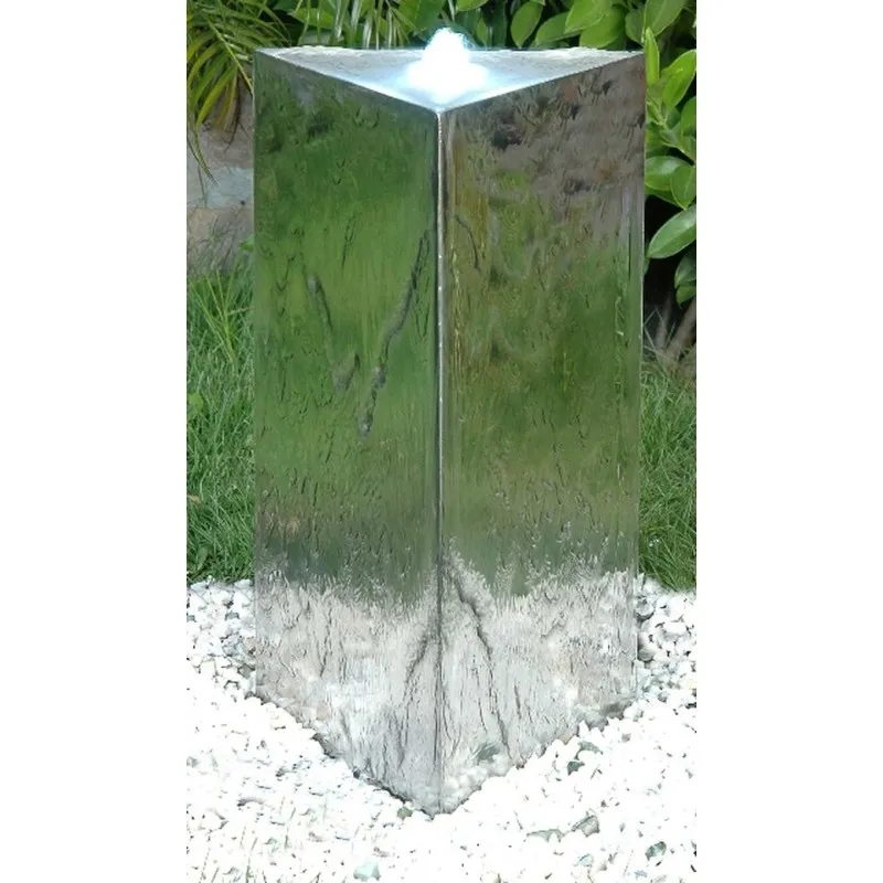 Dodaj poczucie elegancji do ogrodu dzięki tej wspaniałej, trójkątnej fontannie. Nowoczesny styl będzie odpowiadał każdemu wzorowi ogrodu, a wypolerowana powierzchnia będzie odbijać światło do zacienionych miejsc ogrodu.Woda płynie łagodnie ze szczytu fontanny i tworzy aurę relaksu.Zintegrowane diody LED dodatkowo poprawiają wygląd fontanny i pozwalają cieszyć się jej widokiem również w nocy.