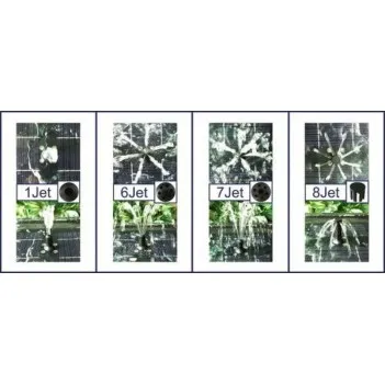 Dekoracja dostarczania jest z czterema głowami do pompy, pozwalając na wybranie między 1, 6, 7 lub 8 możliwościami wytrysku. Woda spływa w dół pierwszego piętra w podstawę poniżej gdzie bieg wody rozpoczyna się od nowa. Ta fontanna jest w pełni samodzielna.