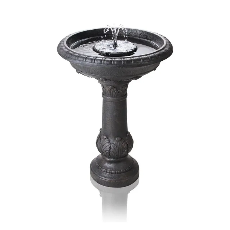 Ta fontanna wodna uderza ciemną żywicą poliestrową, wspomnieniem Viktoriańskich, metalowych ozdób ogrodowych. Dodaj dotyk stylu klasycznego dla każdej przestrzeni twojego ogrodu. Produkt jest w pełni samodzielny i zasilany słonecznie, oznacza to, że może zostać umieszczona gdziekolwiek zechcesz.