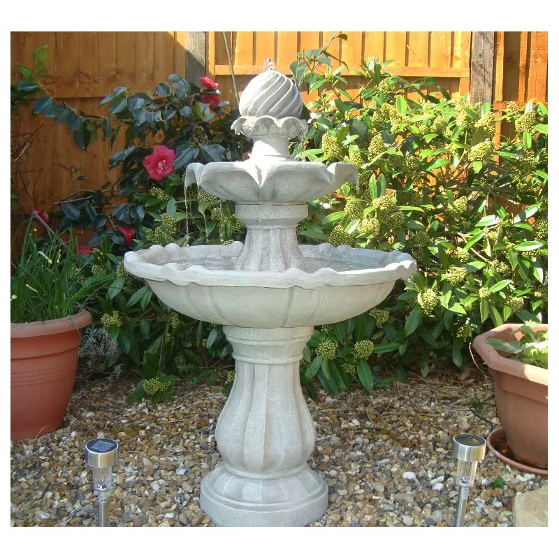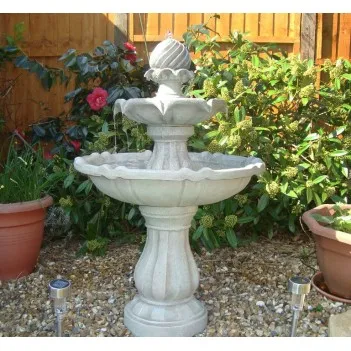Urocza fontanna wodna z trzema poziomami, została wykonana z wysokiej jakości żywicy organicznej, która jest bardzo trwała, lekka i wytrzymała, a ponadto odporna na promieniowanie UV i mróz. Posiada klasyczną konstrukcję trój-poziomowej fontanny, wraz z pięknym wykończeniem każdego z poziomów.