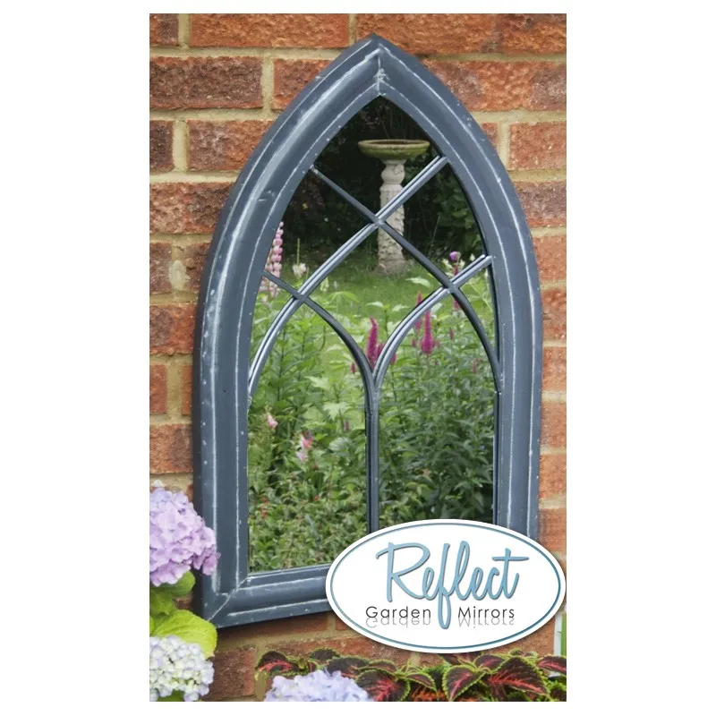 Gotyckie szklane lustro ogrodowe z efektem drewna