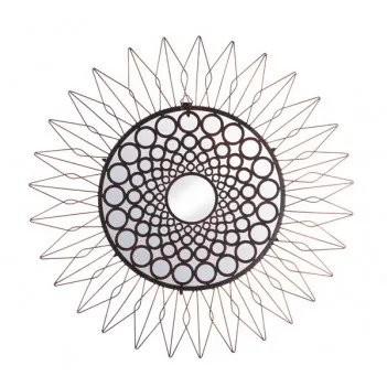 To piękne lustro przedstawia geometryczny wzór słonecznika w naturalnym brązowym kolorze. Wyraźne, koncentryczne kręgi w centrum zwierciadła odwzorowują naturalny wzór słonecznika, stwarzając lustro które jest równocześnie proste jak i rozpoznawalne.