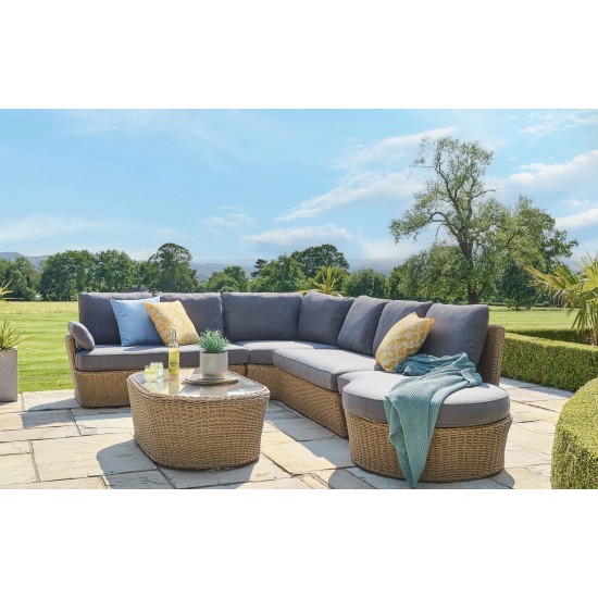 Palermo Empress Lounge Corner Set with Coffee Table to stylowy, luksusowy zestaw narożny, który łączy komfort głębokiego siedziska z eleganckim designem inspirowanym śródziemnomorskim stylem życia. Wykonany z ręcznie plecionego technorattanu o grubości 6 mm na lekkiej, odpornej na korozję ramie aluminiowej, zestaw oferuje trwałość i wyjątkowy komfort użytkowania. Miękkie, szybkoschnące poduchy z tkaniny Olefin są łatwe w utrzymaniu i odporne na promieniowanie UV, co pozwala cieszyć się zestawem przez wiele sezonów. What’s included: 2-osobowa sofa (W1330 × D770 × H730 mm), narożna leżanka (W1580 × D730 × H730 mm), stolik kawowy (W1200 × D700 × H380 mm) oraz stolik boczny (W480 × D480 × H510 mm). Zestaw sprawdzi się zarówno w dużych ogrodach, jak i na tarasach lub przy basenie, zapewniając przestrzeń do relaksu i spotkań z rodziną i przyjaciółmi. Stabilna konstrukcja oraz materiały odporne na warunki atmosferyczne i łatwe w czyszczeniu zapewniają długowieczność. Produkt objęty jest 5-letnią gwarancją na konstrukcję i wykonanie.