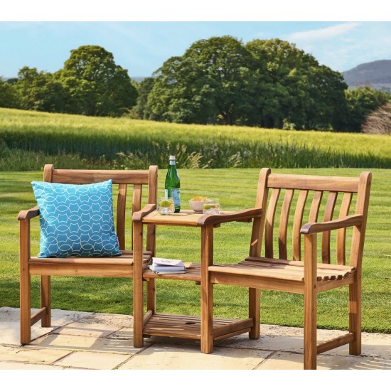 Redcliffe Acacia Wood Companion Set to klasyczny zestaw ogrodowy z trwałego drewna akacjowego (acacia hardwood), w którego skład wchodzi 1 zestaw 2 krzeseł połączonych stolikiem środkowym. Produkt wyróżnia się wysoką odpornością na czynniki atmosferyczne i eleganckim, ciepłym odcieniem drewna. Wymiary: szer. 1790 mm × gł. 860 mm × wys. 880 mm; Waga: 29 kg; Gwarancja: 3 lata. Idealny do ogrodu, patio lub przestrzeni wypoczynkowej.