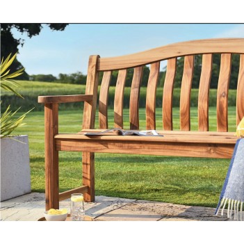 Redcliffe Acacia Wood Turnberry Bench to klasyczna ławka ogrodowa wykonana z trwałego twardego drewna akacjowego, które charakteryzuje się złocistym odcieniem i wyróżniającym się rysunkiem słojów. W zestawie znajduje się 1 ławka Turnberry w dwóch rozmiarach: 4FT – szer. 1290 mm × gł. 620 mm × wys. 970 mm oraz 5FT – szer. 1540 mm × gł. 620 mm × wys. 970 mm. Gwarancja: 3 lata. Idealna do ogrodu, na taras, patio czy strefy relaksu w przestrzeniach zewnętrznych.