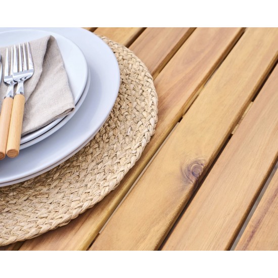 Redcliffe Acacia Wood Rectangular Dining Table to solidny stół jadalniany wykonany z trwałego litego drewna akacjowego, który stanowi serce aranżacji ogrodowej bądź tarasowej. W zestawie znajduje się 1 stół o wymiarach: szer. 1650 mm × gł. 1000 mm × wys. 740 mm i wadze ok. 32 kg, idealny do biesiadowania z rodziną i przyjaciółmi. Gwarancja: 3 lata. Połączenie klasycznego wzornictwa z ręcznie szlifowaną, olejowaną powierzchnią drewna sprawia, że stół jest nie tylko funkcjonalny, ale i estetyczny.