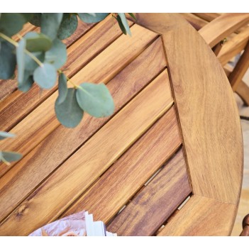 Redcliffe Acacia Wood Folding Dining Table 1.1m to wysokiej klasy okrągły stół jadalniany wykonany z trwałego, twardego drewna akacjowego, idealny do aranżacji tarasu, ogrodu czy patio. W zestawie znajduje się 1 okrągły stół o średnicy 1.1 m, który mieści komfortowo do 4 osób. Wymiary: szerokość 1100 mm × głębokość 1100 mm × wysokość 740 mm, waga ok. 17 kg. Dzięki praktycznemu mechanizmowi składania łatwo go złożyć i schować, co czyni go idealnym rozwiązaniem nawet w mniejszych przestrzeniach. Gwarancja: 3 lata.
