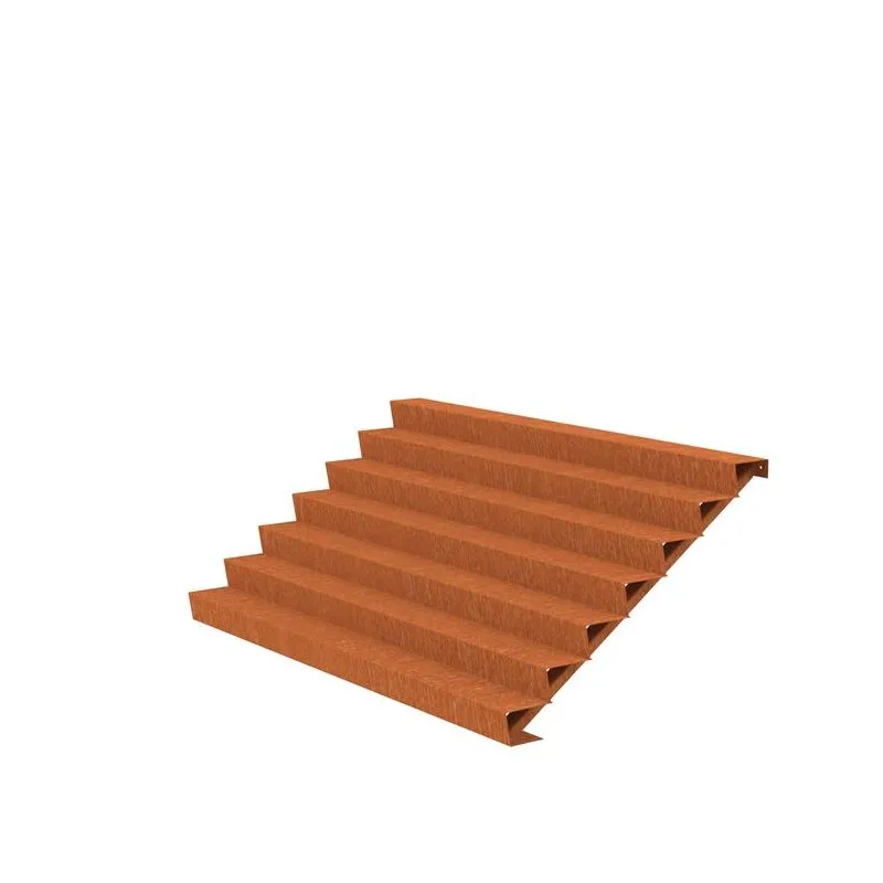 Szerokość tych schodów może wynosić od 1000 mm do 3000 mm. Standardowo stopnie mają wysokość 170 mm, a my produkujemy schody o maksymalnie 15 stopniach. Schody ze stali Corten są produkowane na zamówienie, dlatego nigdy nie są dostępne w magazynie. Czas dostawy wynosi 3 tygodnie.