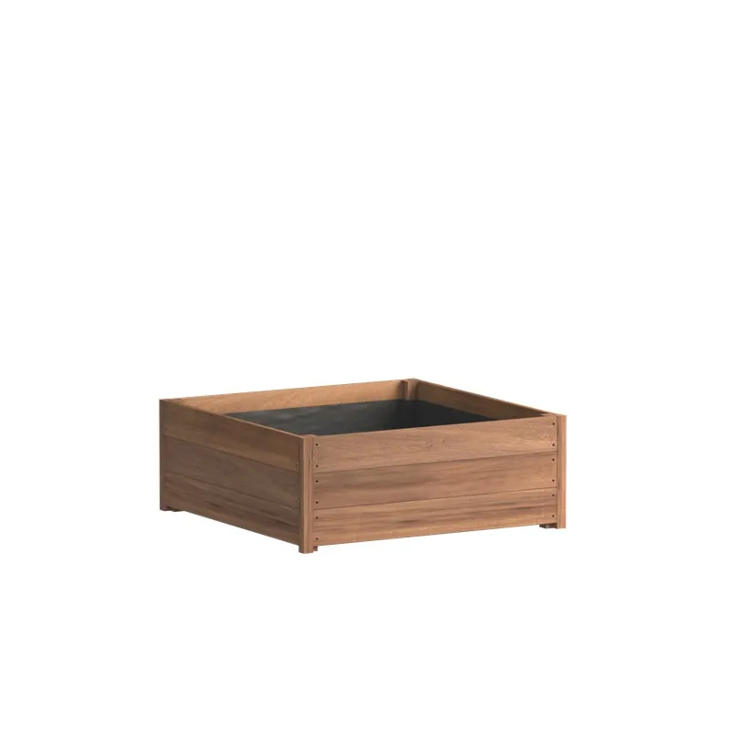 Te wysokiej jakości sadzarki wykonane są z tropikalnego drewna twardego. Zapewnia to, że są one przyjazne dla środowiska i zapewniają ciepły i naturalny wygląd. Używamy tylko drewna twardego o klasie wytrzymałości 2. Ze względu na wysoką trwałość drewna nie jest wymagana dalsza obróbka. Jeśli sadzarki nie zostaną poddane obróbce, będą się one stopniowo starzeć, co nie ma wpływu na jakość sadzarek. Są zbudowane przy użyciu elementów złącznych ze stali nierdzewnej, wnętrze jest owinięte EPDM, a spód materiałem zapobiegającym osadzaniu się korzeni.