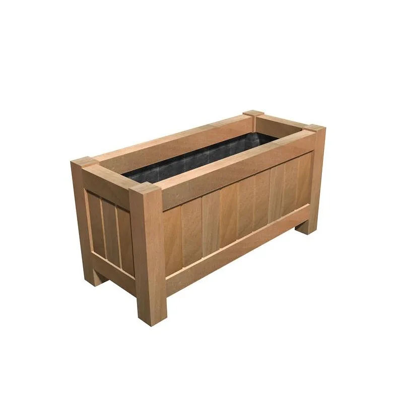 Te wysokiej jakości sadzarki wykonane są z tropikalnego drewna twardego. Zapewnia to, że są one przyjazne dla środowiska i zapewniają ciepły i naturalny wygląd. Używamy tylko drewna twardego o klasie wytrzymałości 2. Ze względu na wysoką trwałość drewna nie jest wymagana dalsza obróbka. Jeśli sadzarki nie zostaną poddane obróbce, będą się one stopniowo starzeć, co nie ma wpływu na jakość sadzarek. Są zbudowane przy użyciu elementów złącznych ze stali nierdzewnej, wnętrze jest owinięte EPDM, a spód materiałem zapobiegającym osadzaniu się korzeni