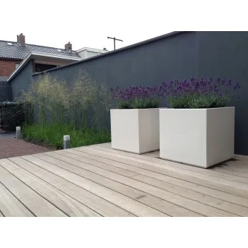Górna krawędź tych sadzarek jest dwukrotnie odwrócona, co nadaje im wspaniały ponadczasowy wygląd. Sadzarki są produkowane z wysokiej jakości wzmocnionego włókna szklanego. Ponieważ zbrojenie zostało rozszerzone na rogi, rogi te nie mogą się rozerwać. Sadzarka jest zabarwiona na całym materiale i dlatego zachowa swój kolor. Standardowo wszystkie sadzarki z włókna szklanego są dostarczane w kolorze RAL 7021.