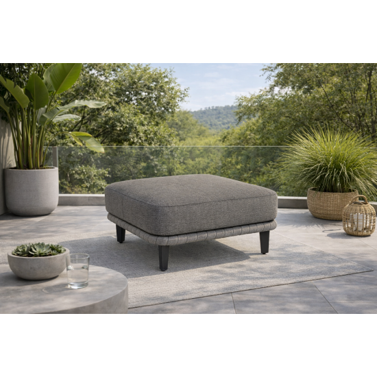 Эта стильная пуф-подставка идеально вписывается в любой уличный лаунж-уголок — будь то сад, терраса или патио. Она может выступать как вспомогательное сиденье для гостей, так и как удобное место для отдыха ног после долгого сидения. Лёгкий, но прочный алюминиевый каркас с порошковым покрытием обеспечивает длительную службу мебели, а устойчивое к влаге, солнцу и механическим воздействиям Olefin плетение сохраняет презентабельный вид даже при эксплуатации под открытым небом. Мягкая подушка с водонепроницаемым interliner гарантирует повышенный комфорт и снижает потребность в частом помещении внутри. Благодаря модульности пуф отлично сочетается с другими элементами коллекции Cordial Luxe, такими как диваны, кресла или кофейные столики, создавая целостный и гармоничный интерьер outdoor-пространства. Светло-серый цвет изделия легко вписывается в современные и классические стили внешнего оформления, обеспечивая стильный и уютный уголок для отдыха всей семьи.