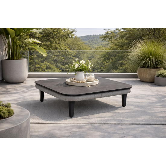 Кофейный столик Cordial Luxe Light Grey сочетает современный дизайн и прочность, необходимые для активного использования на открытом воздухе. Его размеры обеспечивают удобную поверхность для размещения напитков, закусок и декоративных элементов во время отдыха на свежем воздухе. Каркас из алюминия с порошковым покрытием гарантирует устойчивость к коррозии, а толстое оплетение из Olefin-волокна добавляет изделию выразительности и устойчивости к атмосферным воздействиям. Верхняя часть столика, выполненная из высокопрочного HPL-материала, отличается гладкостью, прочностью и простотой в уходе, что делает его идеальным для повседневного использования. Столик прекрасно сочетается с элементами коллекции Cordial Luxe — диванами, креслами или пуфами — создавая целостный и функциональный ансамбль для отдыха. Его современный вид в светло-сером цвете органично вписывается в разнообразные стили оформления открытых пространств, добавляя уют и комфорт каждому уголку сада или террасы.