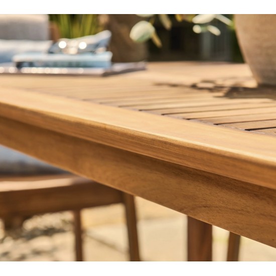 Обеденный стол Cotswold Rectangular Dining Table отличается прочной конструкцией и привлекательным дизайном. Натуральное акациевое дерево, обработанное маслом, придаёт поверхности глубокий оттенок и подчёркивает красивую текстуру древесины, делая каждый стол уникальным. Просторная прямоугольная столешница размером 800 мм в ширину и 1600 мм в глубину обеспечивает достаточно места для семейных обедов и дружеских встреч под открытым небом. Конструкция стола устойчиво противостоит воздействиям погоды и повседневному использованию. В комплект входит 1 × обеденный стол Cotswold, а 3-летняя гарантия подтверждает качество материалов и надёжность конструкции. Такой стол станет центральным элементом на вашей террасе, в саду или у бассейна, обеспечивая комфортные трапезы на свежем воздухе.