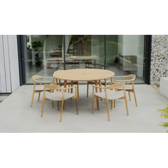 Dana Round Table Ø 1,4 м — это уличный обеденный стол из прочного тикового дерева, предназначенный для сада, террасы или патио. Круглая форма обеспечивает комфортное размещение гостей. Размеры: диаметр 1400 мм, высота 740 мм. Гарантия: 10 лет.