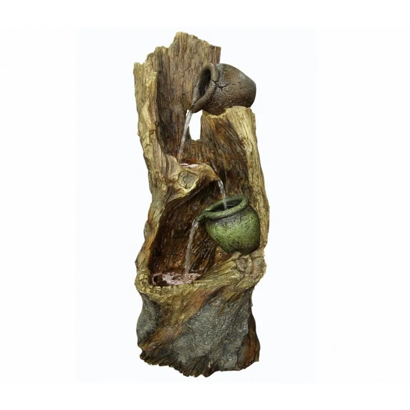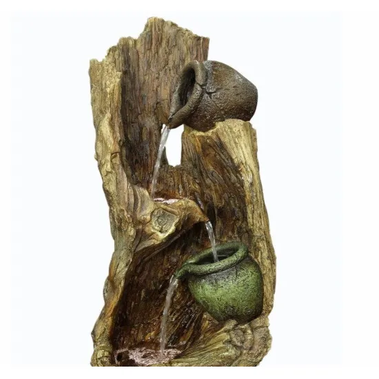 Этот фонтан обработан до мельчайших деталей, и это потому, что это обработанный вручную полирезин, сверхпрочный материал, который идеально подходит для такого типа декоративных элементов, светодиодная подсветка дает дополнительный эффект, вода сверкает ярким светом, когда течет по ней. деревянные и цветочные горшки.