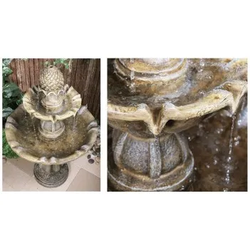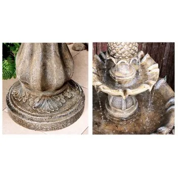 Великолепный фонтан был искусно замаскирован, чтобы создать впечатление старинной каменной отделки, но сделан из высококачественной полиэфирной смолы, легкой, прочной и долговечной. Это упрощает сборку и установку, а также гарантирует, что он выдержит переменчивую погоду.