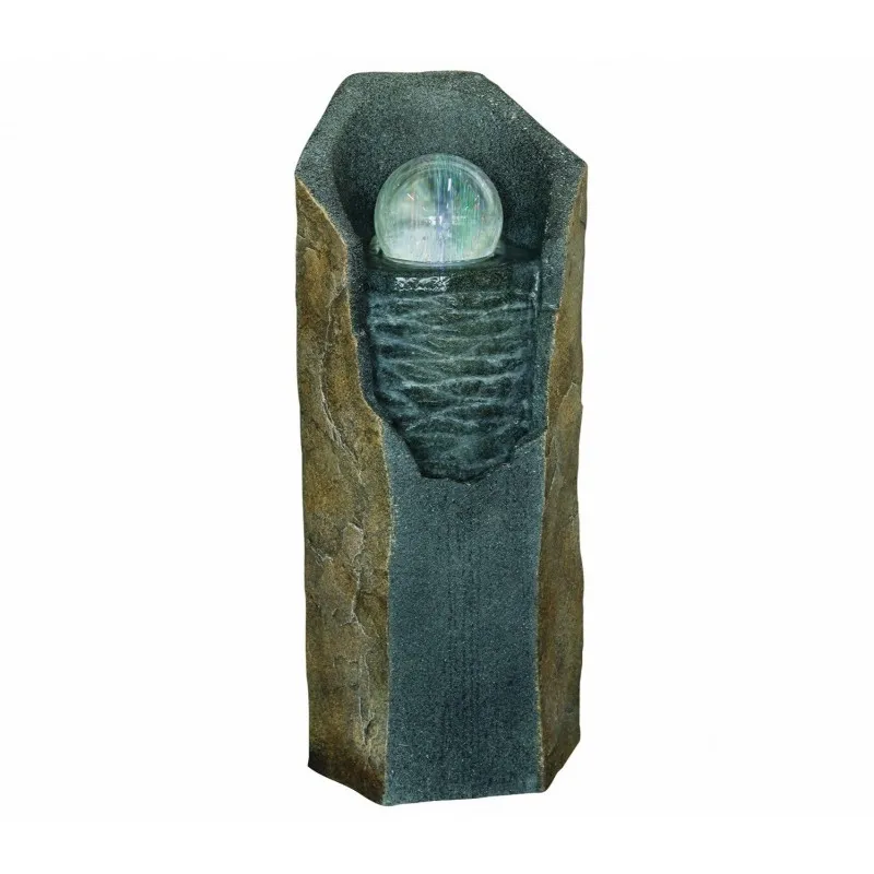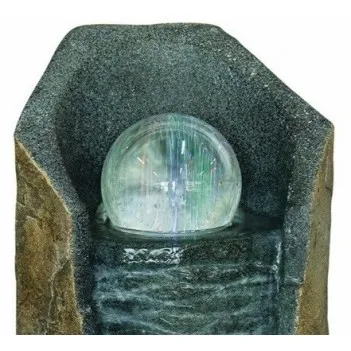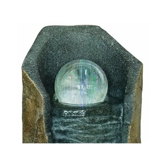 Великолепный каменный фонтан со сверкающим стеклянным водяным шаром, который вращается.
